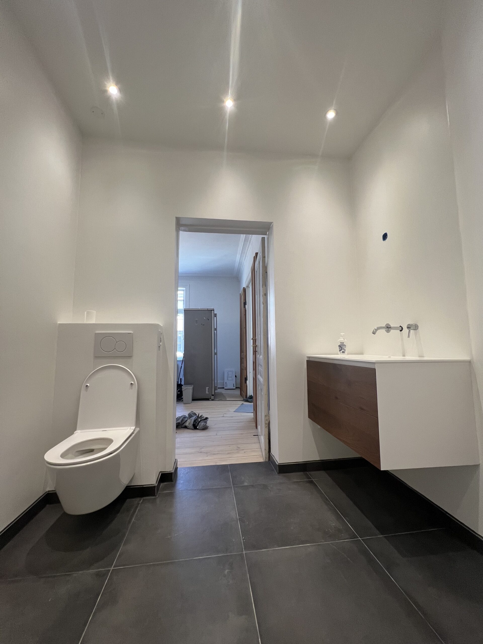 Parret valgte en neutral farvepalet med subtile detaljer for at skabe et tidløst udseende. De besluttede sig for et minimalistisk design med rene linjer og moderne inventar, hvilket passer godt til resten af huset. Nye fliser, et rummeligt bruseområde og smukke armaturer blev nøje udvalgt for at give badeværelset en elegant følelse.