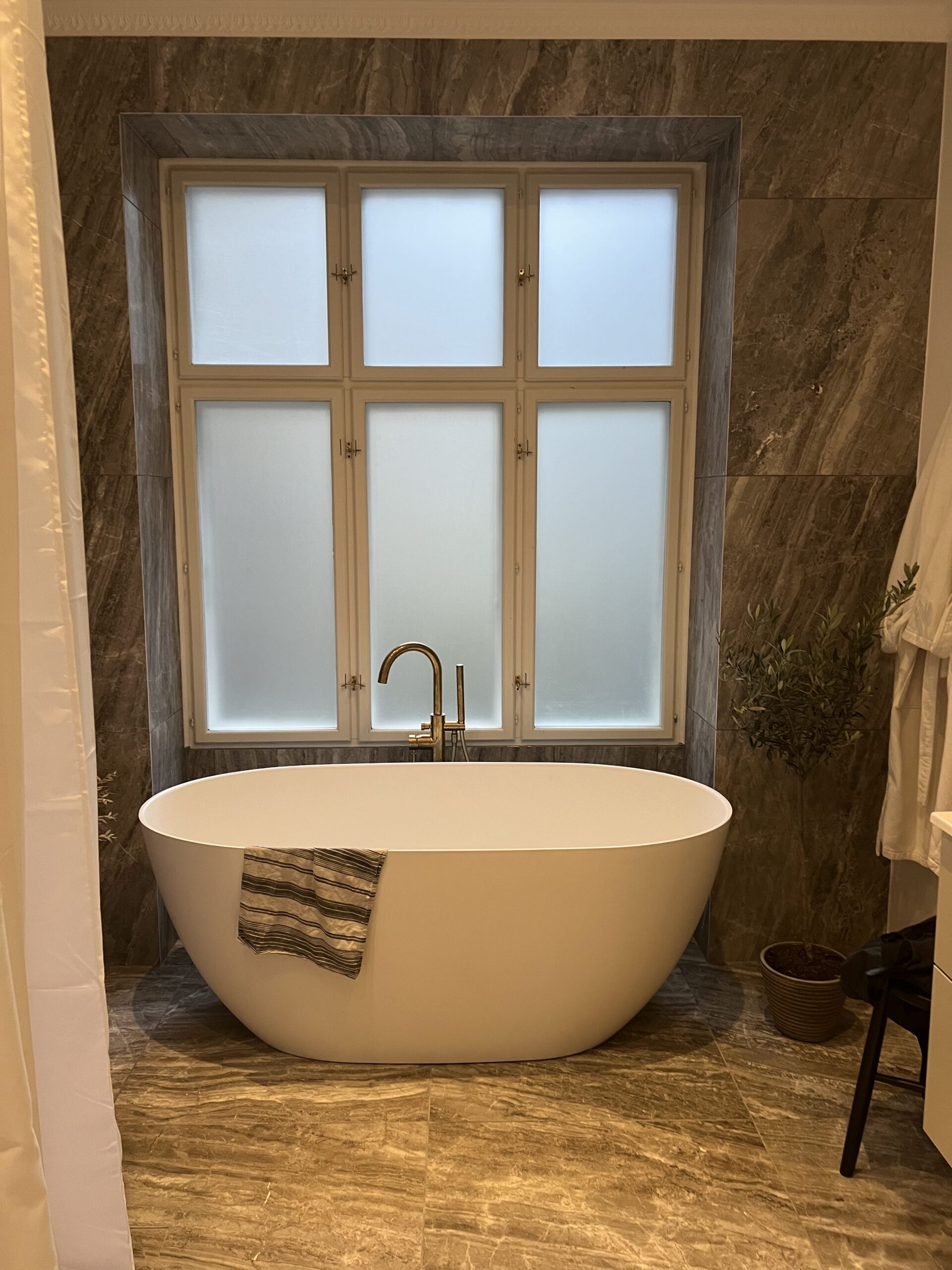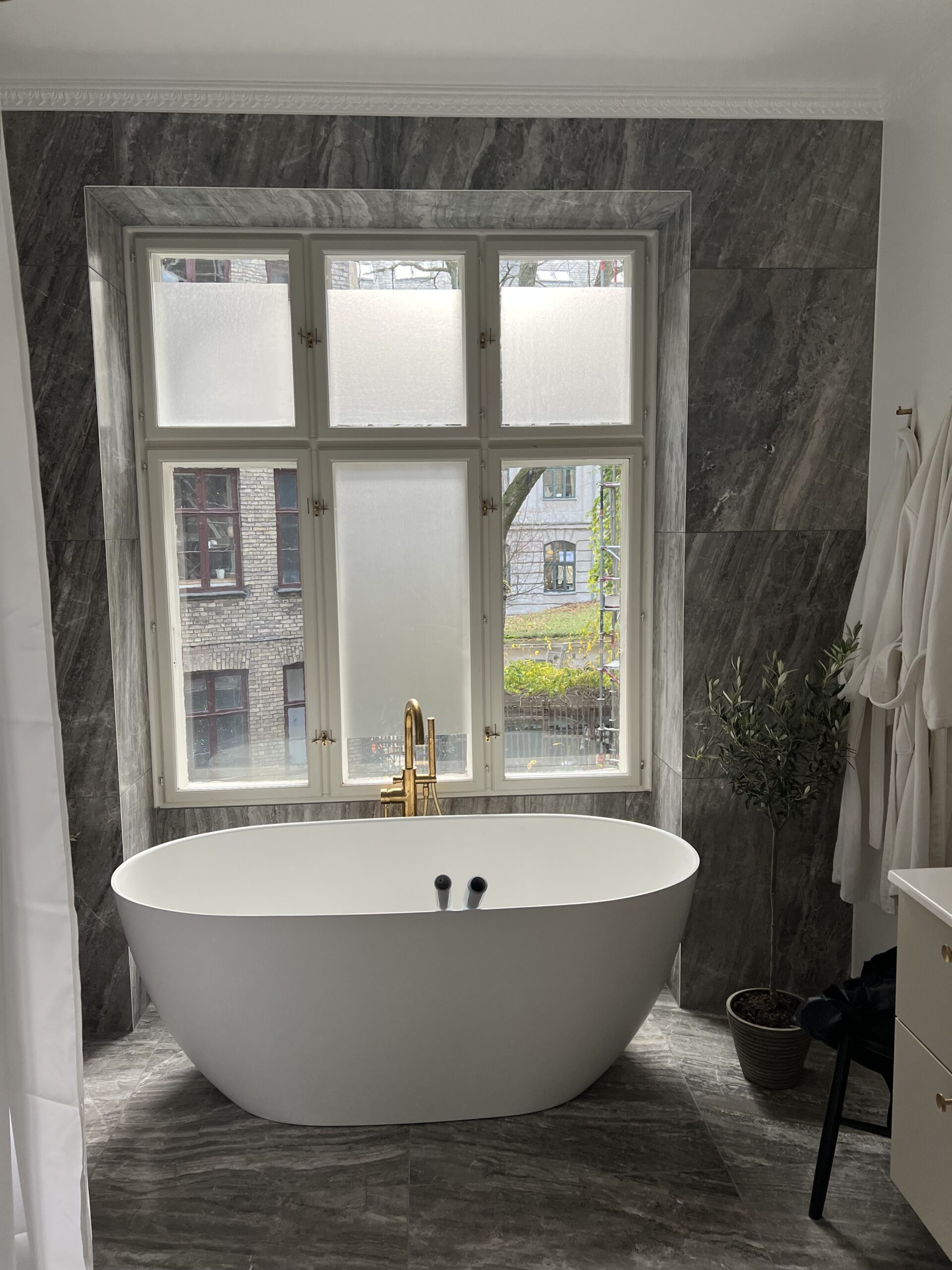 Badeværelset fik en omgang film på ruderne, så der fra nu af kan bades i fred og ro!